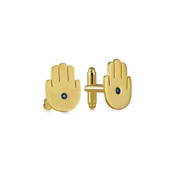 925 sterling silver and brass plated in gold set with a blue sapphire