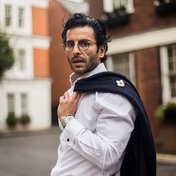 Carved out mother of pearl, set on a base made of 925 sterling silver and brass. Plated in yellow gold or platinum.