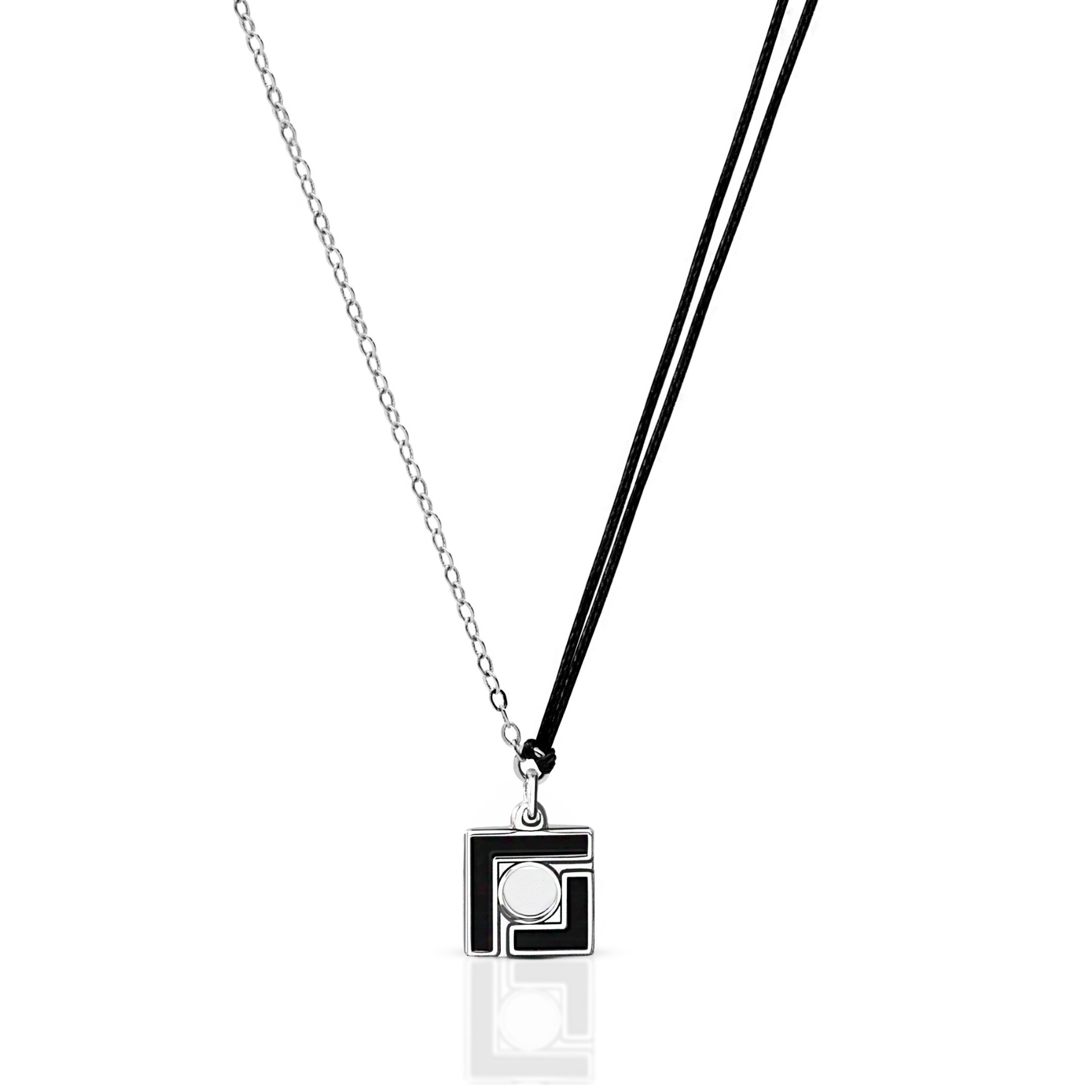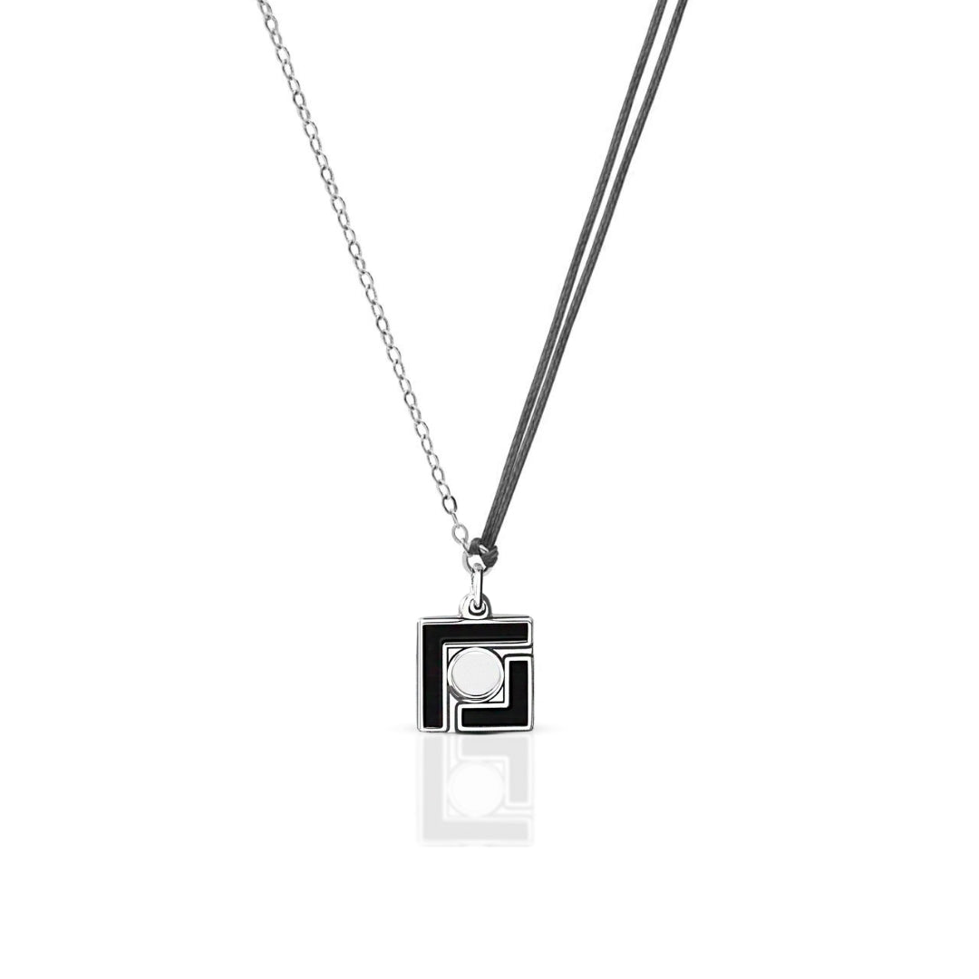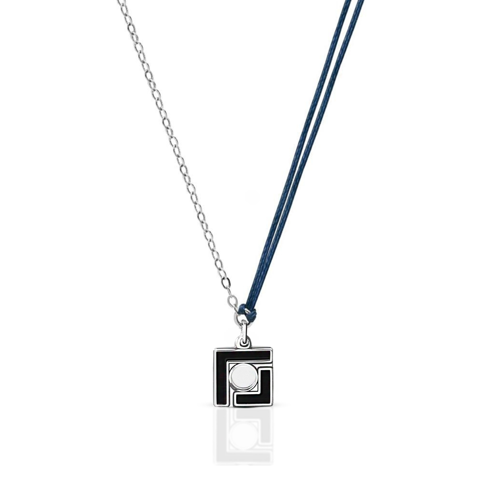 Silk thread and sterling silver chain. Set with our HUWA eye finished with enamel.
