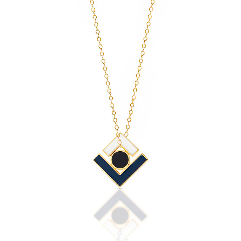 Sterling Silver chain and pendant plated in platinum or gold with blue enamel