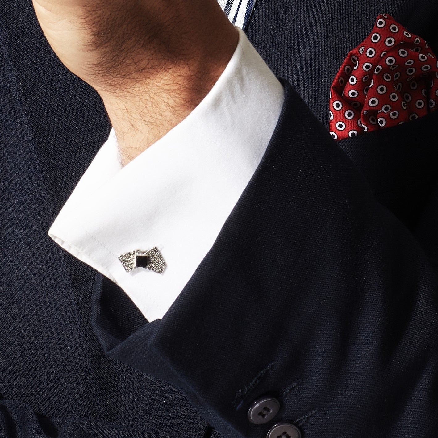 Made in sterling silver, set with a black stone. Plated in 18k gold and in platinum.