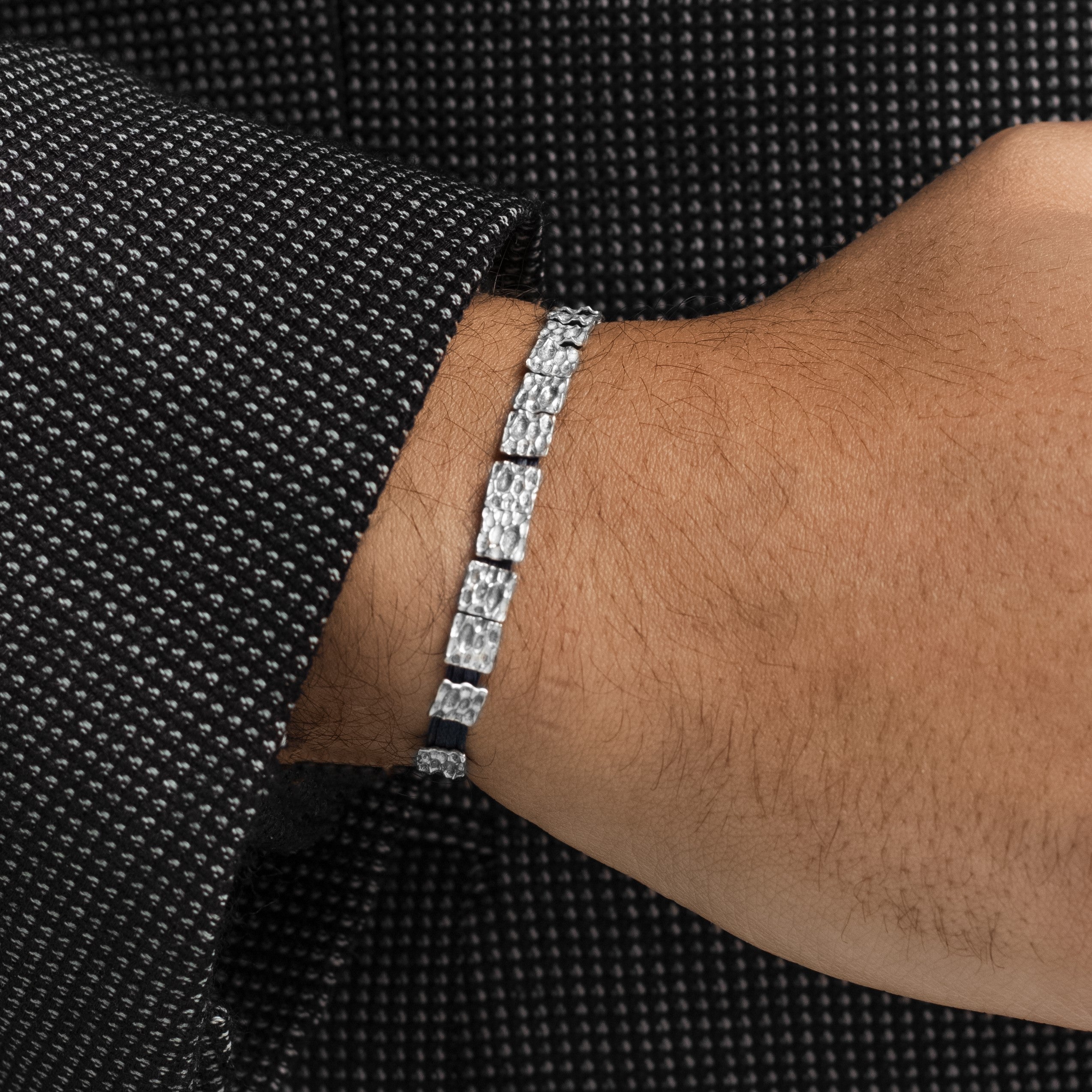 Sterling Silver squares and clasp combined with navy silk thread.