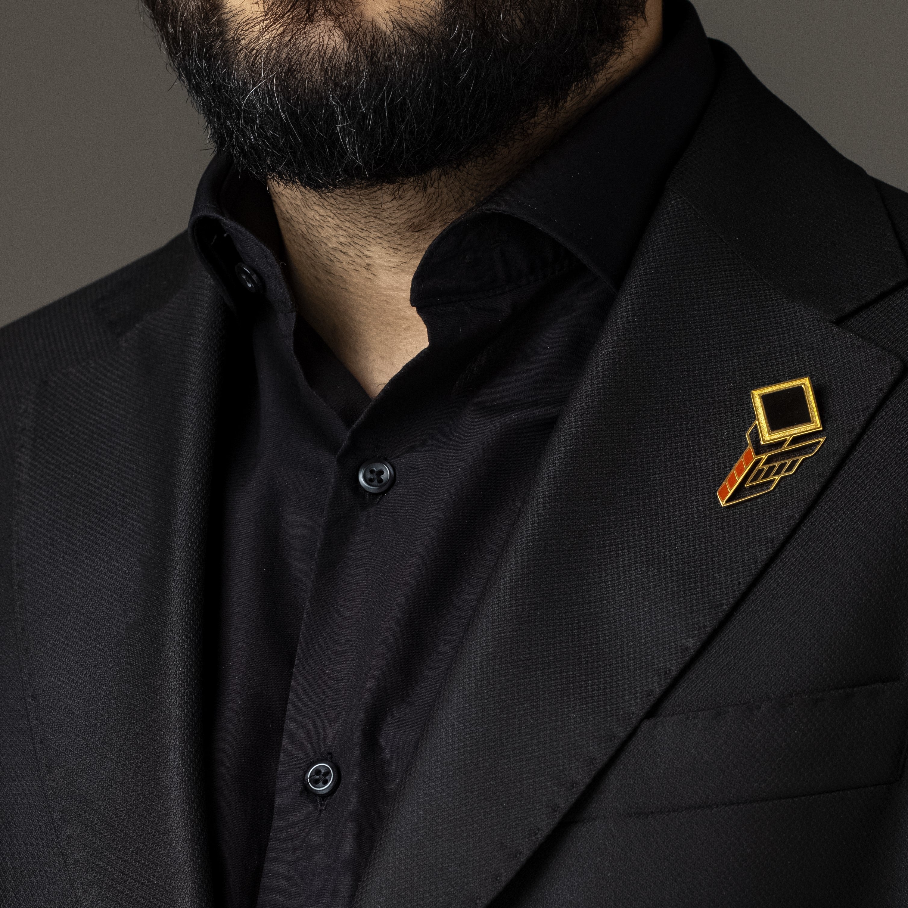 Architecturally inspired piece. Our Tilted Square is made in sterling siver and brass plated in 18K gold and set with a black stone and black/red enamel. Part of our DECO collection. Browse the rest of the collection here.