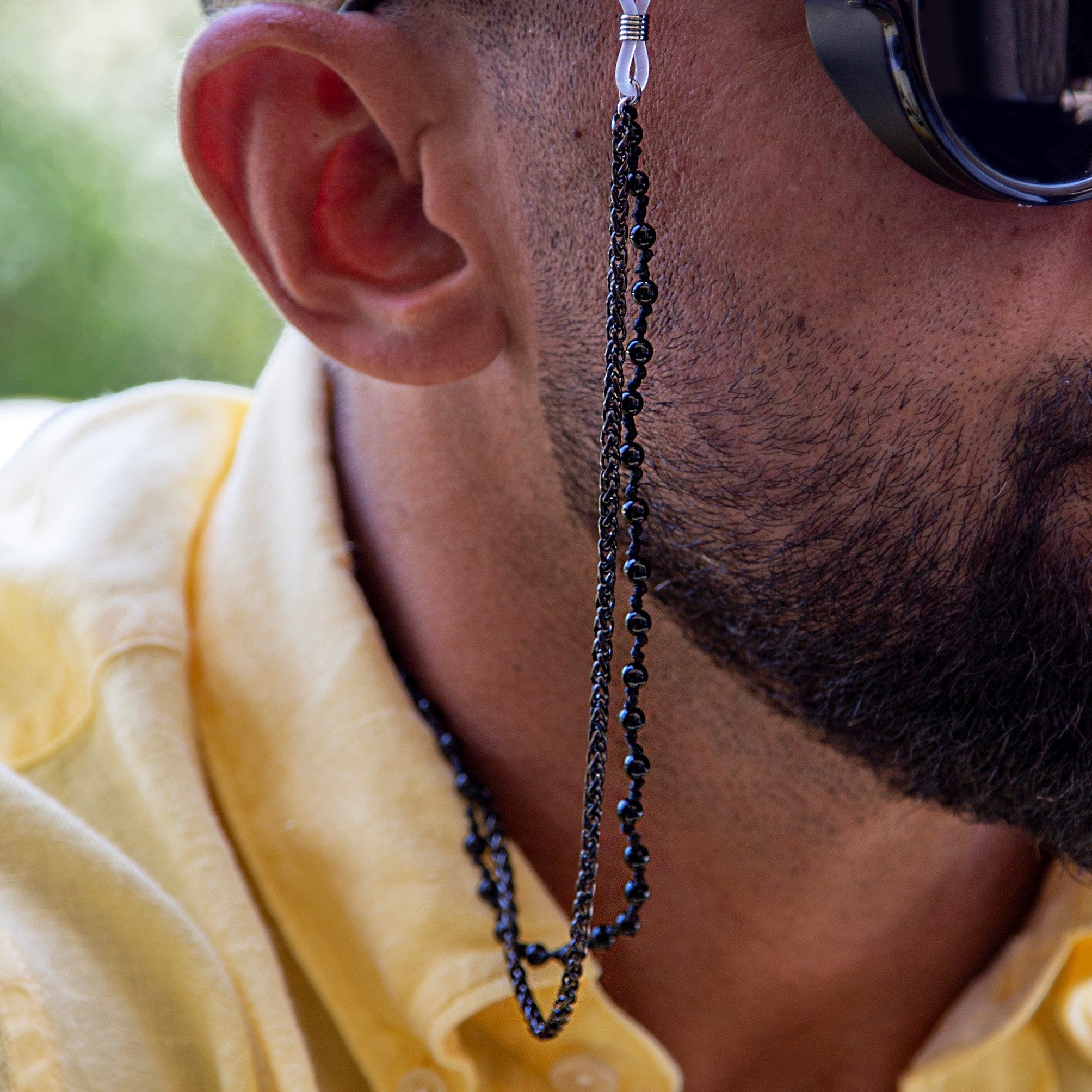 Black Onyx beads and black stainless steel chain